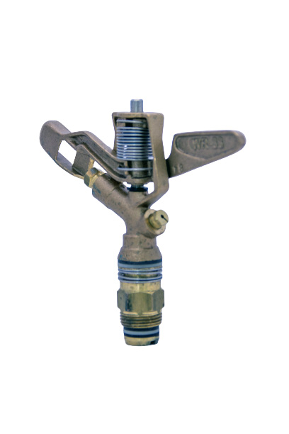 Jolly Impact Drive Sprinkler is constructed with a heavy cast aluminum body, aluminum drive arm and brass lower turning union.