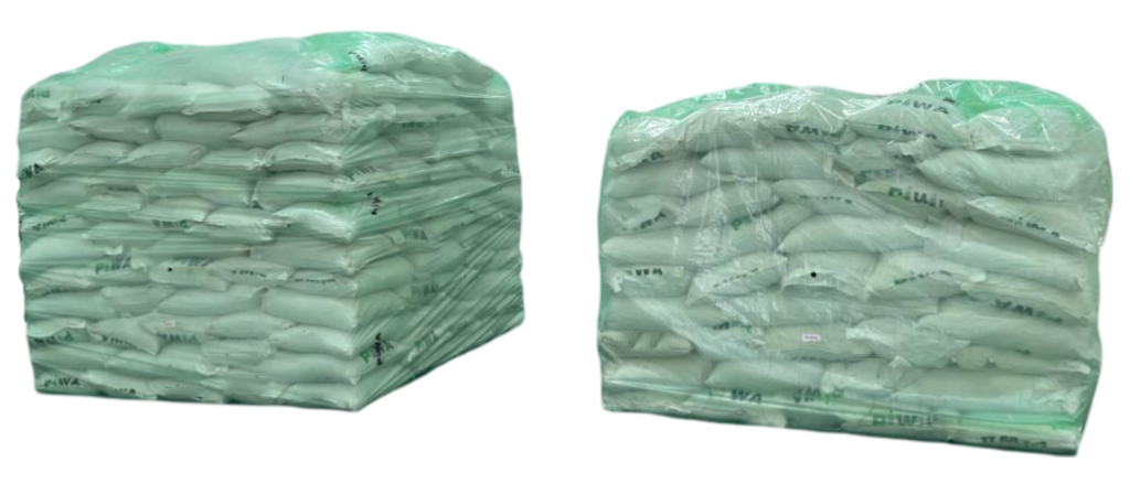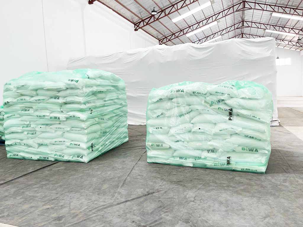 The Agrimat FIBC Hermi Bag is also a space-saving solution. Capable of accommodating up to two stacked FIBCs on pallets, it maximizes space in intermodal containers and simplifies mechanical operations with forklifts.