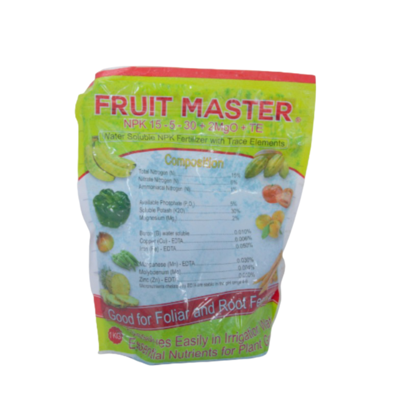 Fruit master is a water soluble fertilizer which is good for foliar and root feeding. It dissolves easily in irrigation water and is an essential nutrient for plant growth.